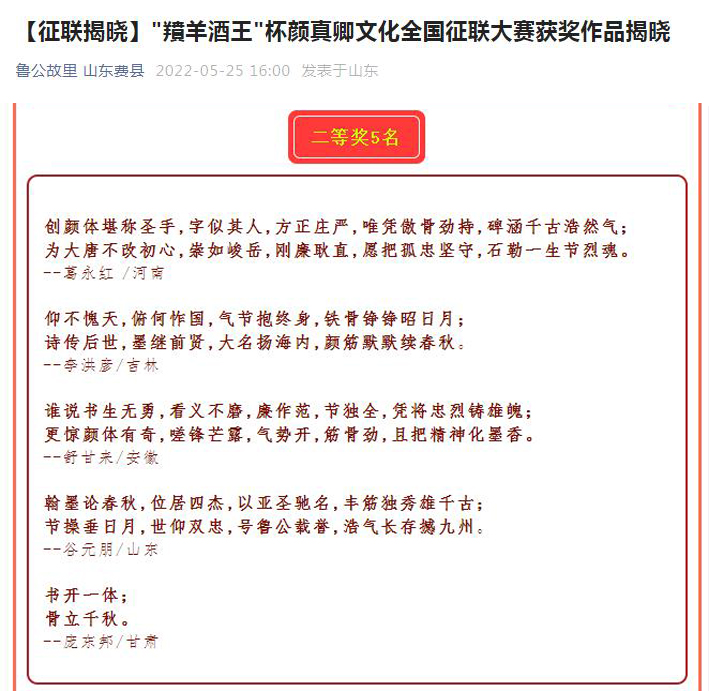 ● 在日前举行的颜真卿文化全国楹联大赛中,我校楹联班教师舒甘来的作品荣获二等奖。