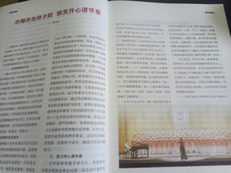 我校声乐教师吴卫红撰写的教学漫谈《亦师亦友伴夕阳 银发丹心谱华章》被由省委老干部局主管、安徽老年大学主办的《安徽老年教育》杂志第5期采用。