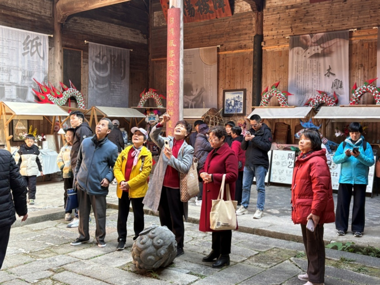 在碧阳村,朗读班学员先后参观了碧山村的古巷、祠堂等特色人文景观,深入了解村落的历史沿革、文化底蕴和发展脉络,还走进村内传统手工作坊,近距离观摩砖雕、竹编、鱼灯等民间手工艺品的制作工艺,亲身触摸体验传统技艺的独特魅力,直观感受非物质文化遗产的传承价值,对古徽州历史文化有了更深刻的认知。