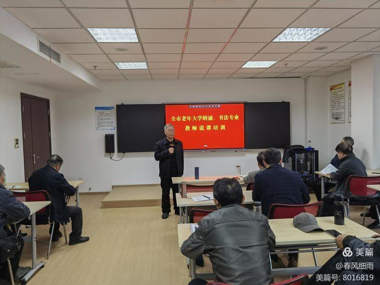 随后,全省老年大学系统优秀教师、市老年大学摄影班教师沈磊带来“说课”专题培训。他结合自身教学和参加全省首届“说课”获奖经验,从“说课”的内容框架、设计技巧、与老年学员的适配性等方面展开讲解,以生动案例拆解“如何把一堂老年课说透、上好”,台下教师们提笔记录,不时点头共鸣。沈老师的专题培训讲座为各区县老年大学朗读、书法专业教师提供了可操作性的范例,让与会者受益匪浅。