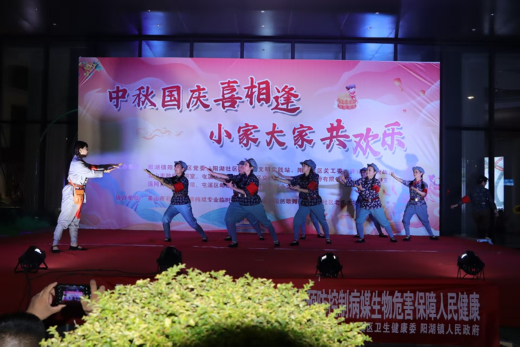 9月28日晚,我校黄梅戏专业临时党支部组织部分学员参加屯溪区阳湖社区举办的“中秋国庆喜相逢,大家小家共欢乐”文艺晚会,吸引了300余名居民观众驻足观看。整场晚会精彩纷呈,历时两小时,表演涵盖了舞蹈、萨克斯演奏、情景剧、独唱、快板、京歌、小合唱、黄梅戏等18个节目,为居民们献上了一场高品味的文化盛宴,营造了喜庆祥和的节日氛围,丰富了社区居民的精神文化生活,获得了大家的一致好评。