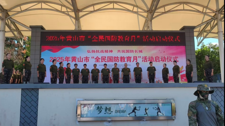 9月22日上午,2025年黄山市“全民国防教育月”启动仪式在市六中举行。活动由黄山市委宣传部、市教育局、市退役军人事务局、市国防动员办公室、黄山军分区政治工作处六部门联合主办,以“弘扬抗战精神,共筑国防长城”为主题,用文艺形式开展国防教育。我校合唱团受邀参演。合唱团班学员们以饱满有力的歌声,演唱《当那一天来临》《强军战歌》。现场师生深受感染,大家表示从歌声中读懂了军人使命担当,感受到祖国强大,理解了“国无防不立,民无防不安”的道理。